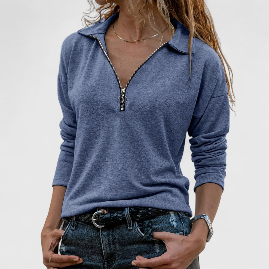 Χριστίνα - Γυναικείο πουλόβερ μισού φερμουάρ με χαλαρή εφαρμογή
