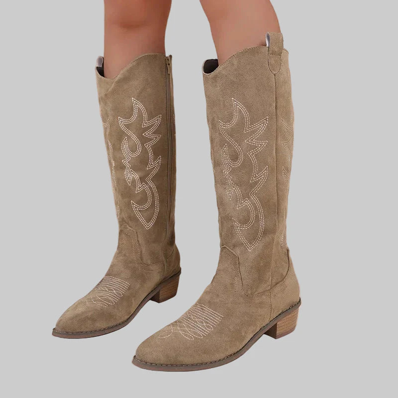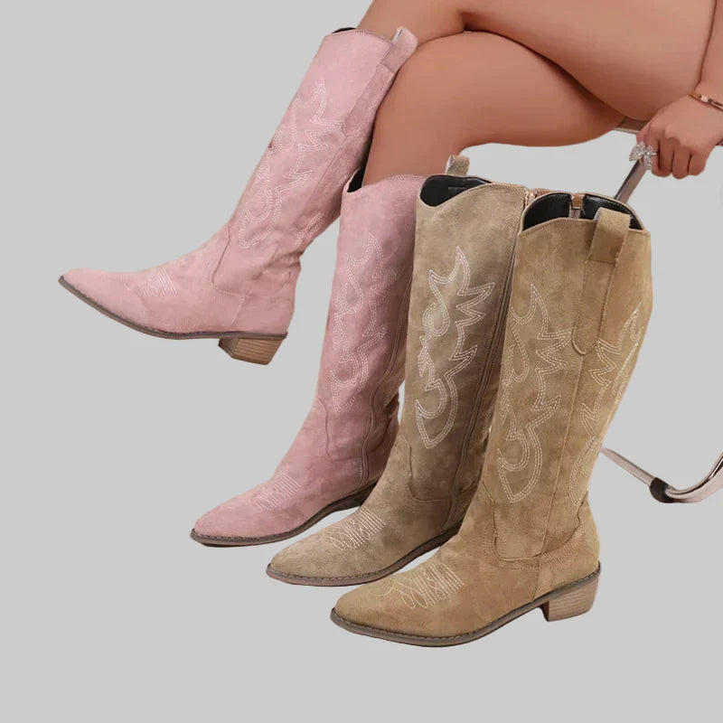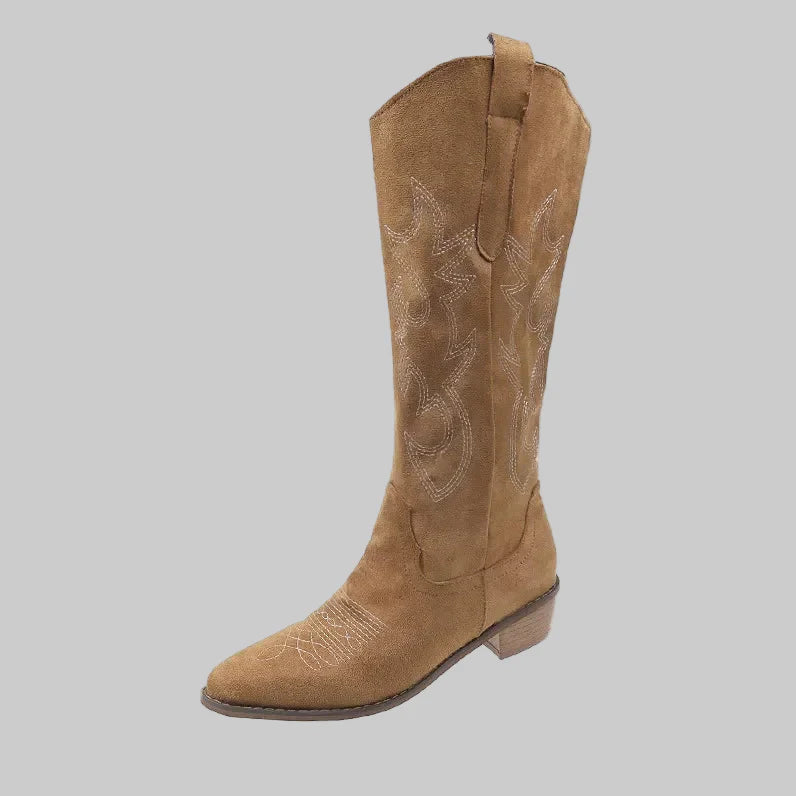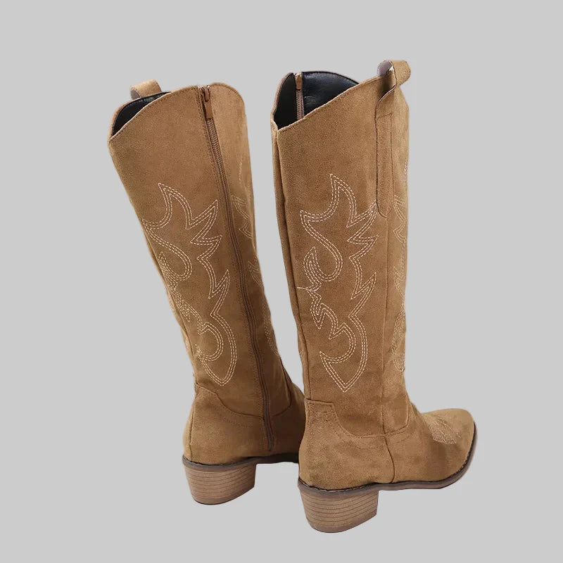 • Estilo Icónico de Cano Alto: O design classico de cano alto com bordados detalhados ea elegante biqueira pontiaguda criam um visual autêntico e intemporal que está no auge da moda.