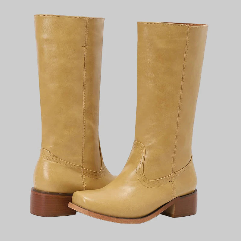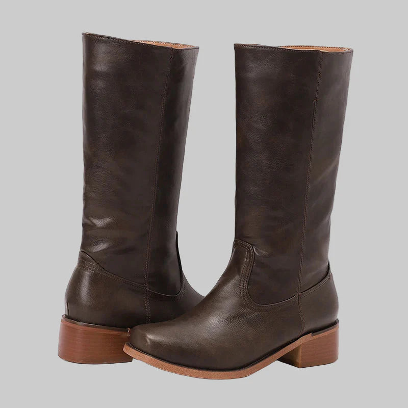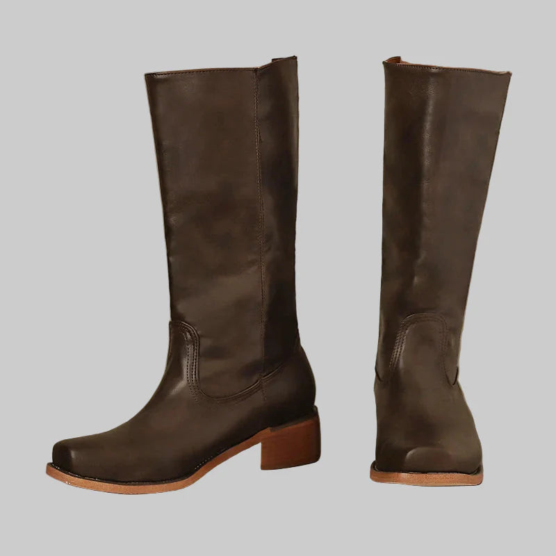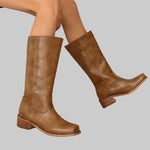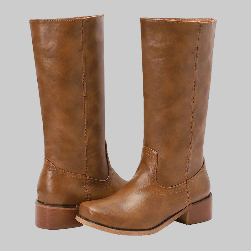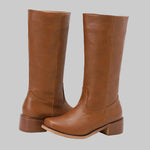 Conforto de Salto Baixo: O salto baixo e quadrado oferece o equilíbrio ideal entre elevação e stabilidade, garantindo que pode usar estas botas durante todo o dia com máximo conforto.