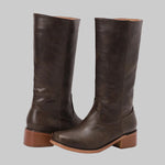 Elegância Clássica e Imponente: O cano alto e estruturado eo material castanho liso criam uma silhueta limpa e extremamente sofisticada , perfeita para um estilo executivo ou casual-chique.