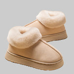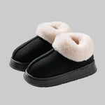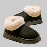 • Conforto e Calor de Luxo: O colarinho de pelo fofo ea palmilha macia envolvem os seus pés, proporcionando um calor e conforto de spa que são essenciais para relaxar em casa.