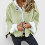Ο συνδυασμός μαλακής υφής, ανοιχτού μπροστινού μέρους και ρηγών ώμων δίνει μια casual αλλά περιποιημένη εμφάνιση.