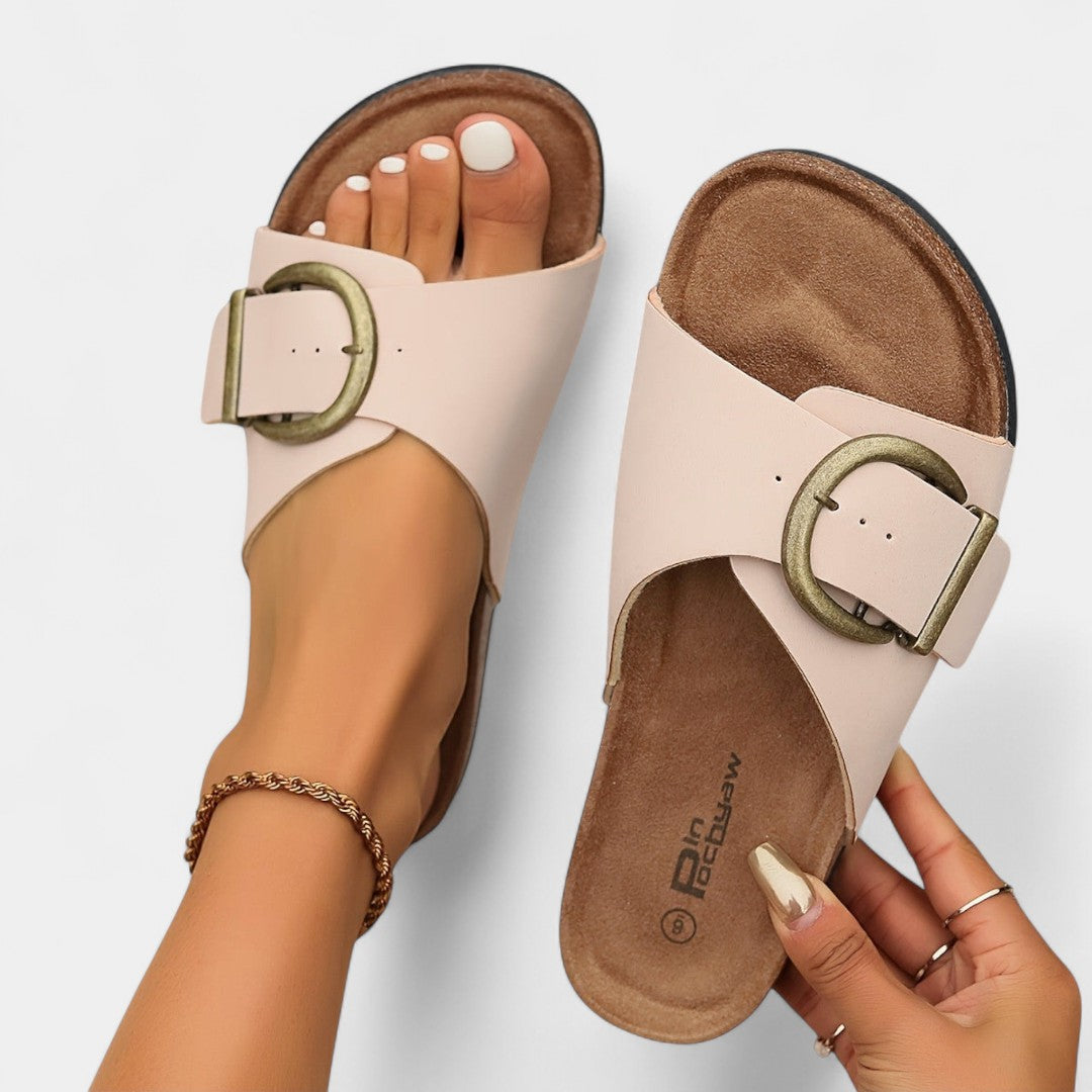 Λουκία - Στιλάτες καλοκαιρινές παντόφλες από φελλό με αγκράφες