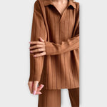 Ένα κομψό σετ που προσαρμόζεται σε κάθε στυλ, χαρίζοντας μια εκλεπτυσμένη και διαχρονική πινελιά σε κάθε εμφάνιση. Ο ευέλικτος σχεδιασμός του το καθιστά ιδανικό για όλες τις περιστάσεις, από casual έως πιο επίσημες. Η απαλή υφή του προσφέρει άνεση, ενώ η χαλαρή εφαρμογή του το καθιστά ιδανικό για καθημερινή χρήση, χωρίς να χάνει τη minimal αισθητική του.
