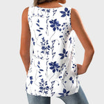 Απολαύστε τη φρεσκάδα του καλοκαιριού με αυτό το αμάνικο τοπ σε λευκή βάση, διακοσμημένο με μπλε λουλούδατα μοτίβα. Η χαλαρή γραμμή του προσφέρει άνεση και ελευθερία κινήσεων, ενώ το ντεκολτέ σε σχήμα V χαρίζει θηλυκότητα και κομψότητα. Ένα ιδανικό κομμάτι για καθημερινές και καλοκαιρινές εμφανίσεις.