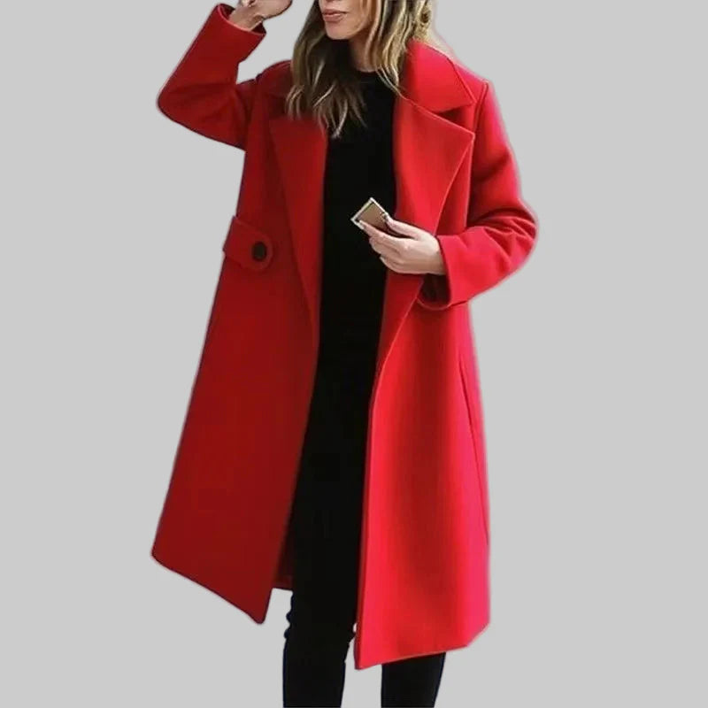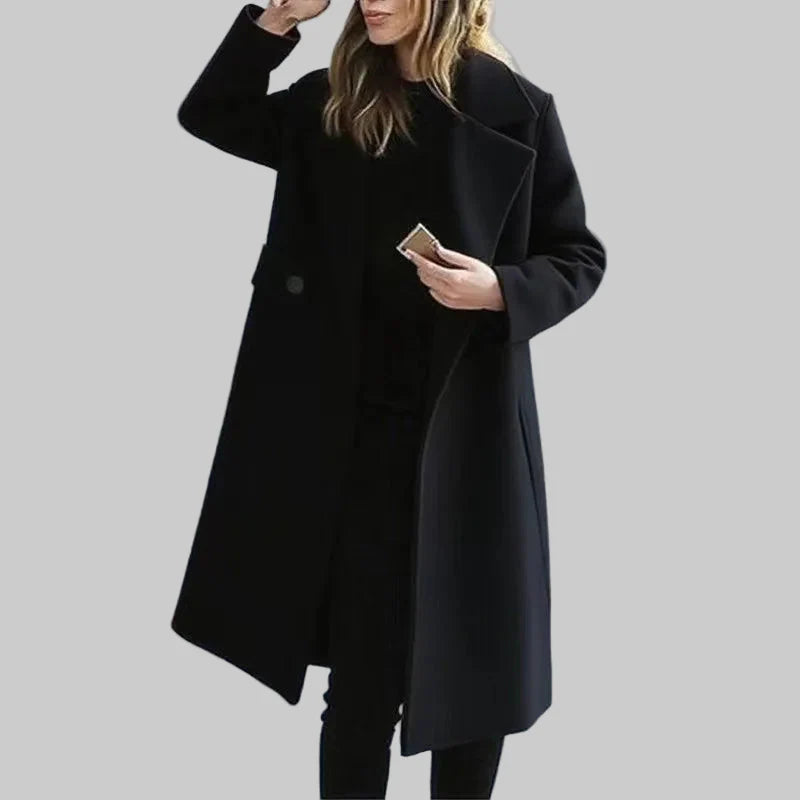 • Elegância Estruturada e Clássica: O corte longo ea lapela definida oferecem uma silhueta sofisticada e elegante que é perfeita para ambientes de trabalho ou eventos sociais, elevando instantaneamente o seu outfit .