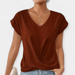 Μπλούζα με λαιμόκοψη σε σχήμα V και κοντά μανίκια
