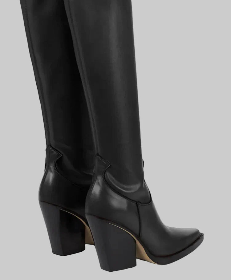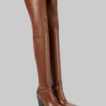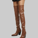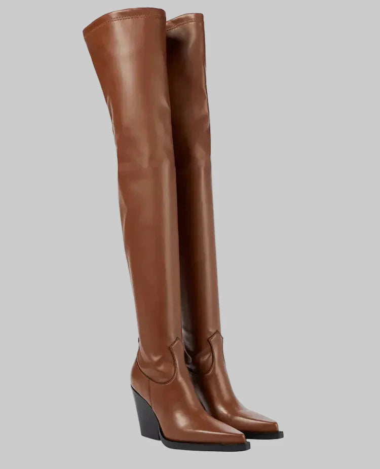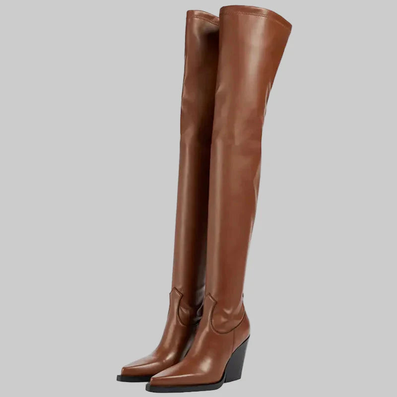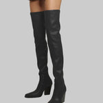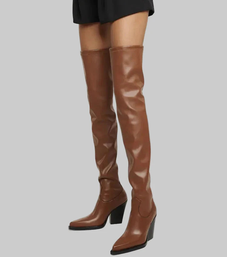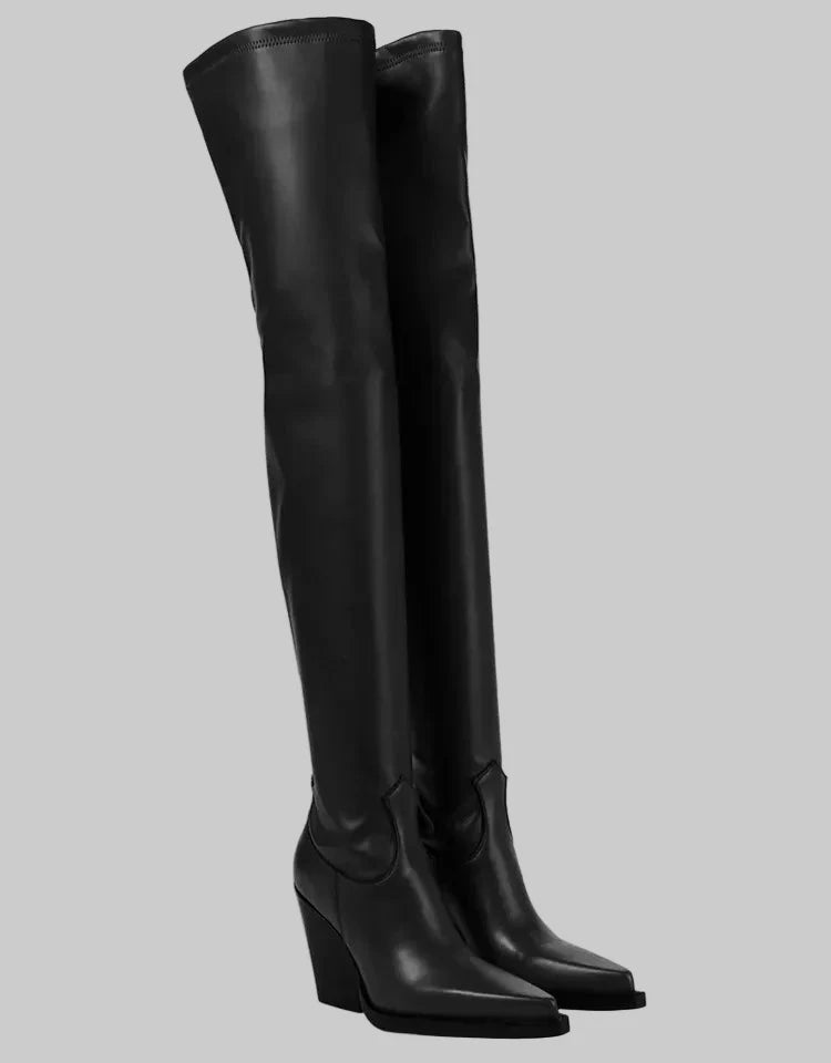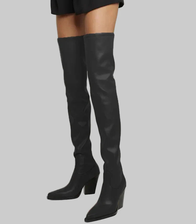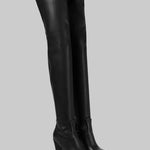 Daphne - Μπότες με τακούνι πάνω από το γόνατο με δερμάτινη εμφάνιση