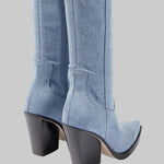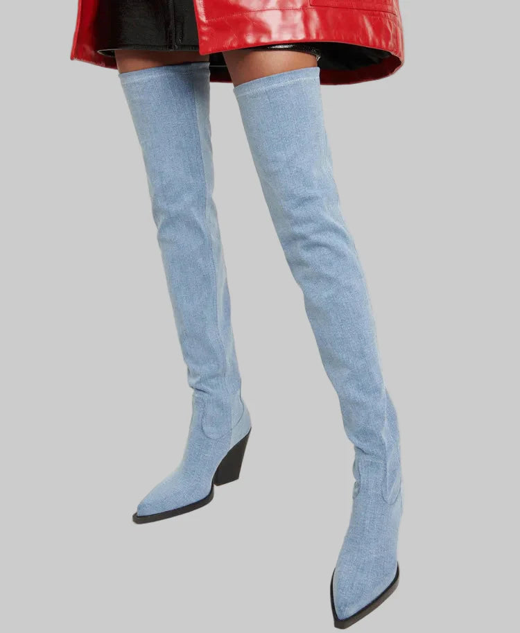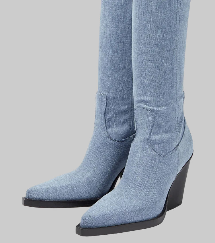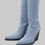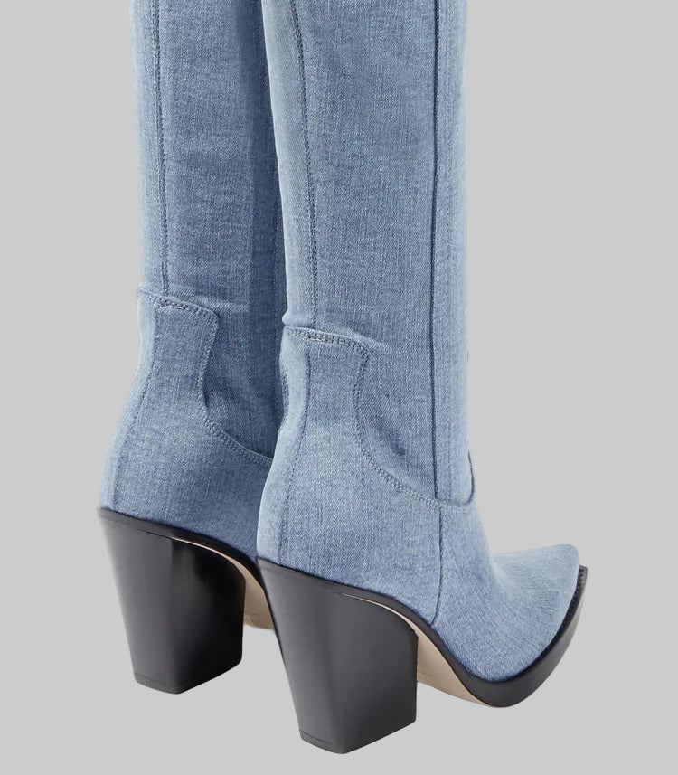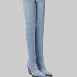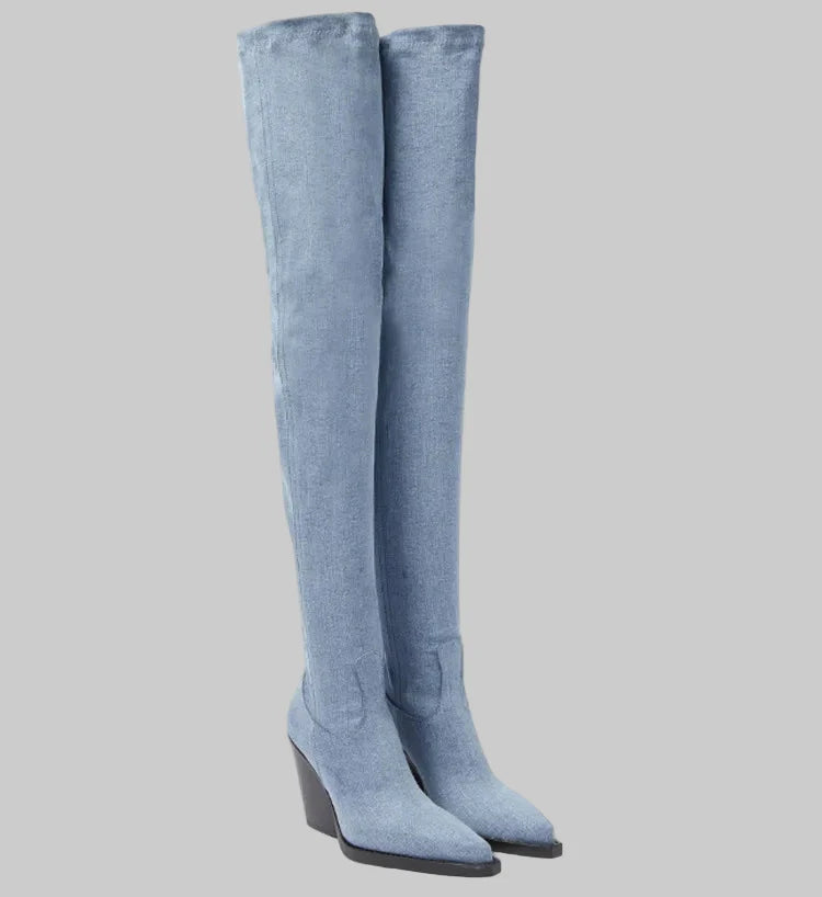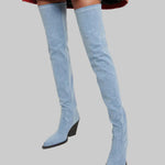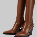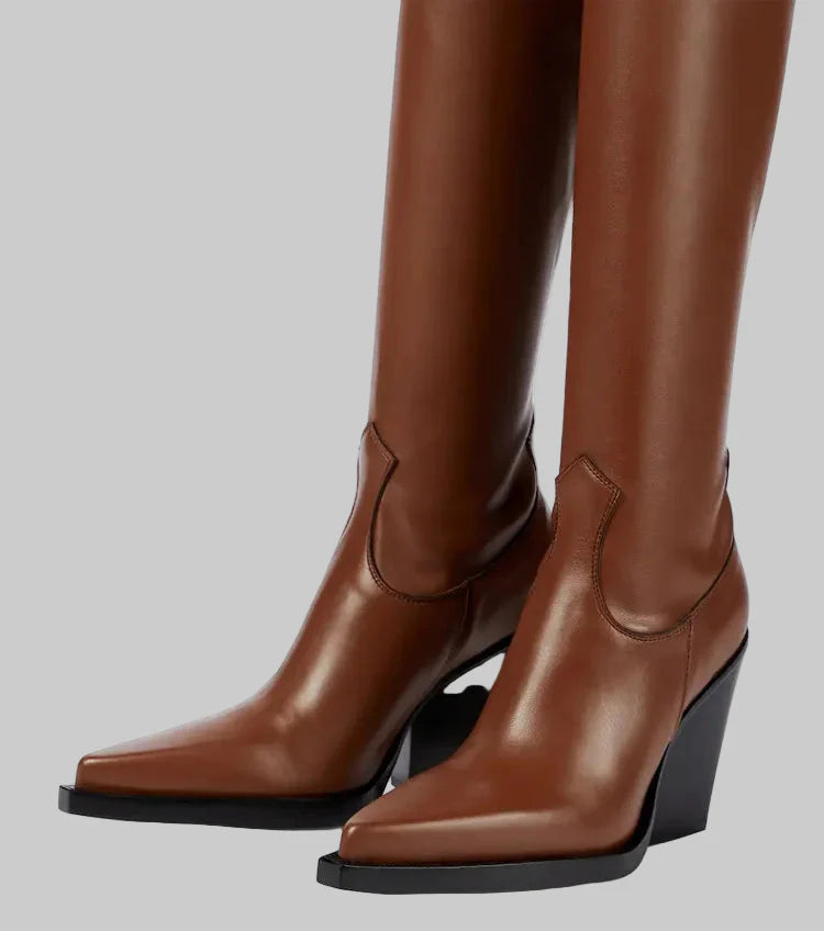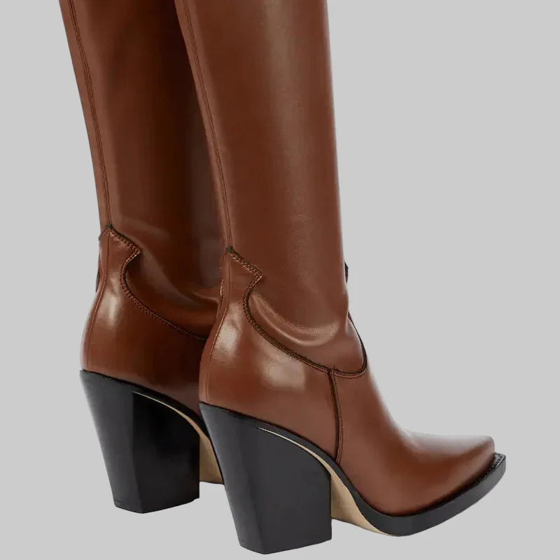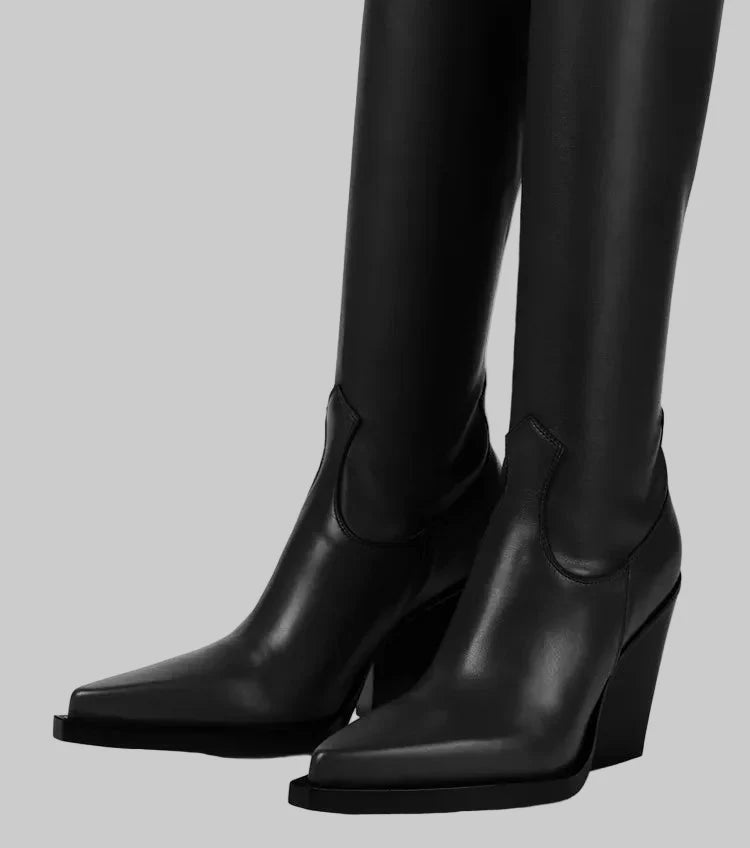 Daphne - Μπότες με τακούνι πάνω από το γόνατο με δερμάτινη εμφάνιση