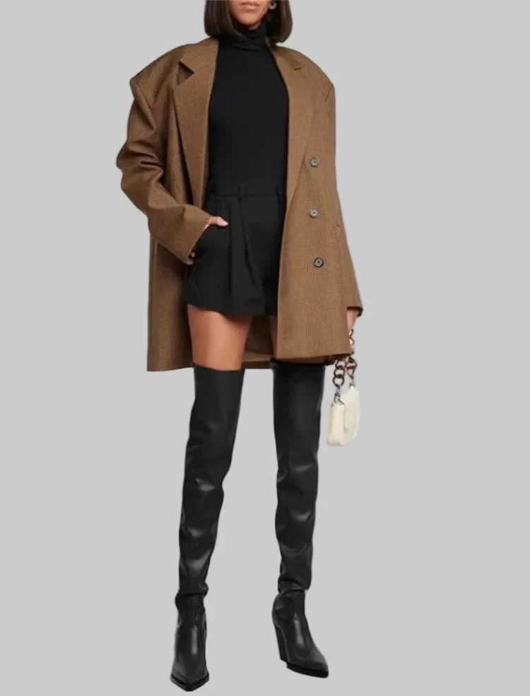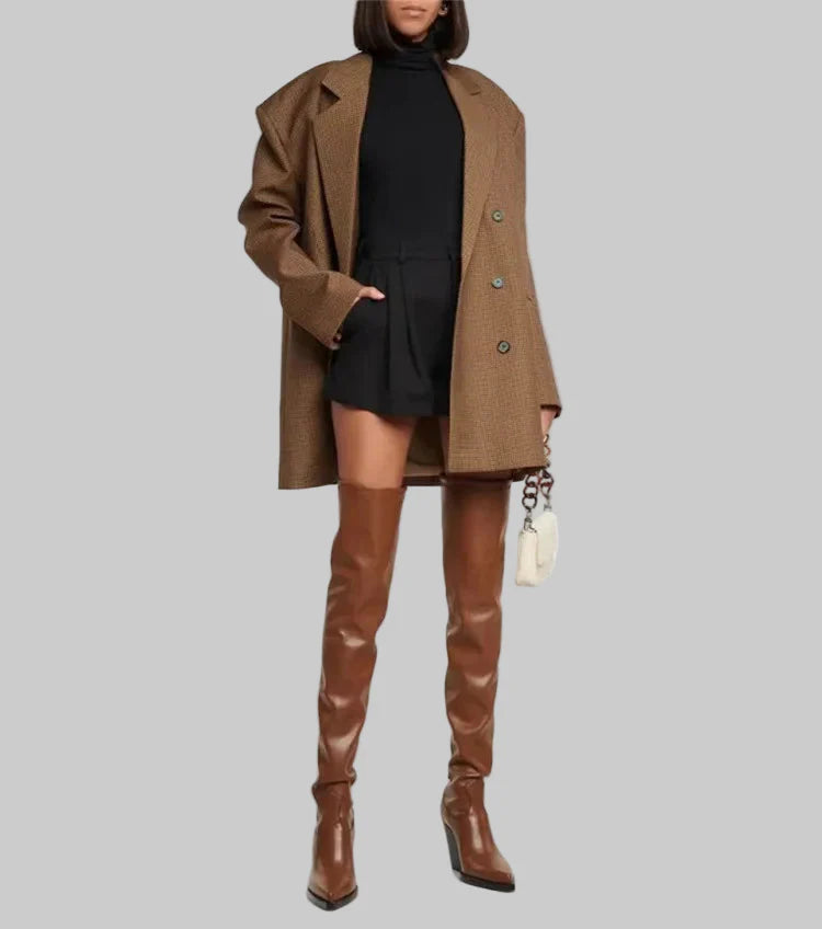 Ajuste Chique e Estruturado: O υλικό estruturado eo salto elegante proporcionam um ajuste sofisticado que complementa casacos oversized , minissaias ou vestidos, adicionando um toque de glamour instantâneo ao seu look .
