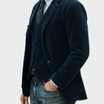 Το μπλέιζερ καθορίζει την κομψότητα, ενώ το γιλέκο προσθέτει τη λεπτομέρεια που κάνει τη διαφορά.